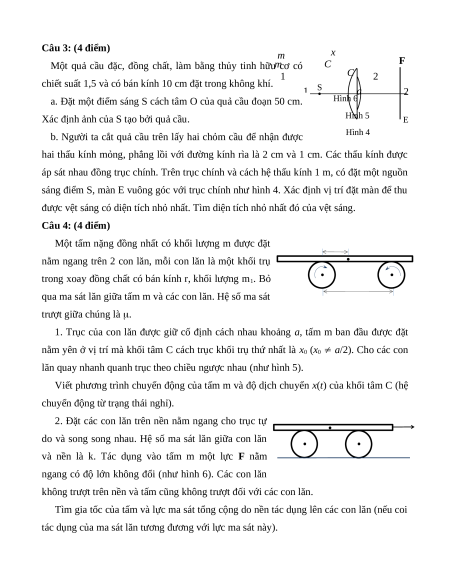 được vệt sáng có diện tích nhỏ nhất. Tìm diện tích nhỏ nhất đó của vệt sáng. Câu 4: (4 điểm)