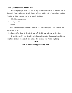 cần phải đo chính xác điện trở của nó ở nhiệt độ phòng. Cho thêm các dụng cụ: - 01 pin có ghi 1,5V; - 01 biến trở;