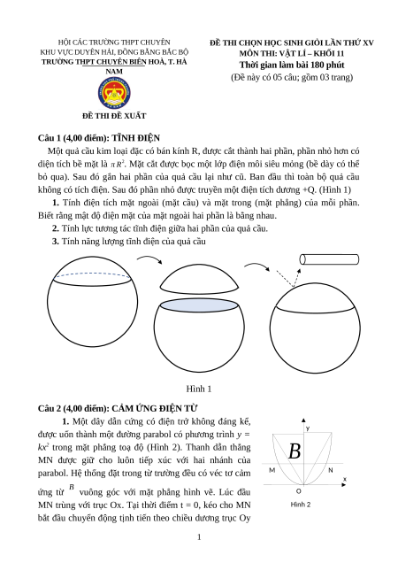 Đề thi HSG Vật Lí 11 Trường THPT Chuyên Biên Hòa