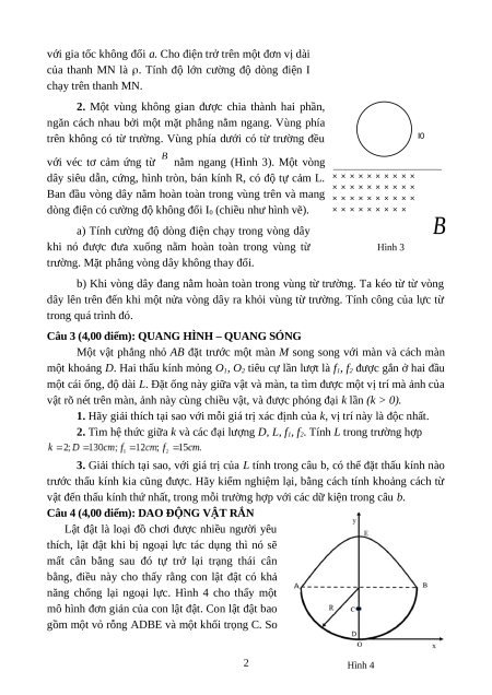 Câu 3 (4,00 điểm): QUANG HÌNH – QUANG SÓNG