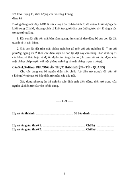 Câu 5 (4,00 điểm): PHƯƠNG ÁN THỰC HÀNH (ĐIỆN – TỪ – QUANG)