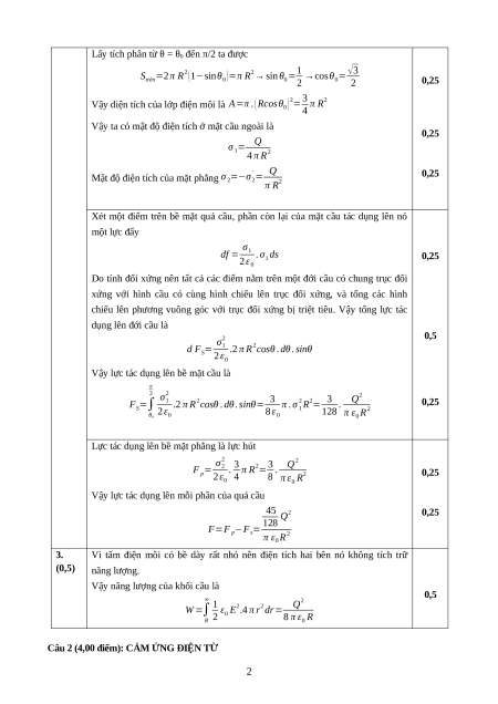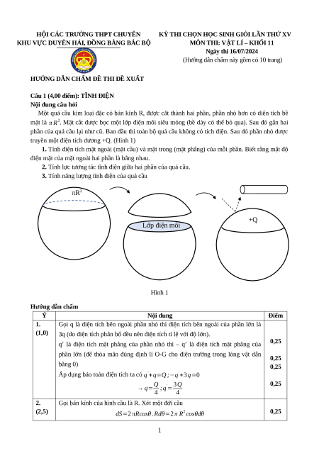 3. Tính năng lượng tĩnh điện của quả cầu πR2 +Q Lớp điện môi Hình 1 Hướng dẫn chấm Ý Nội dung Điểm 1.