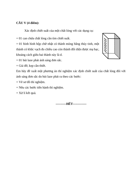 + 01 can chứa chất lỏng cần tìm chiết suất.