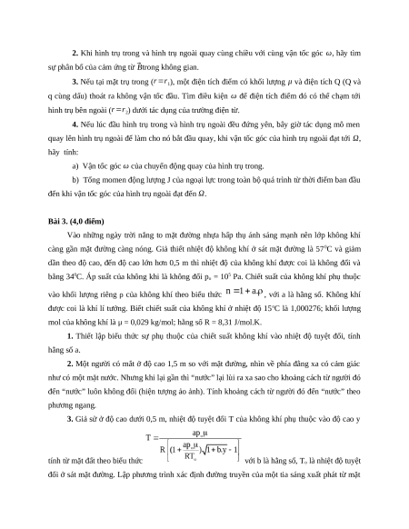 đến khi vận tốc góc của hình trụ ngoài đạt đến Ω. Bài 3. (4,0 điểm)