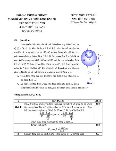 Đề thi HSG Vật Lí 11 Trường THPT Chuyên Lê Quý Đôn - Đà Nẵng