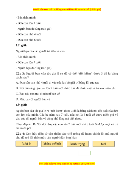 D. Miễn phí cho trẻ em từ 4 đến 6 tuổi Lời giải: