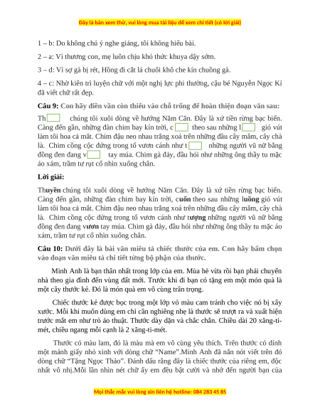 TÀI LIỆU BỘ BÁN CHẠY MÔN Tiếng việt