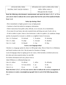 Adam Williams at a williams@tsalagi.com Câu 4: A. officer B. official C. office D. officially Câu 5: A. a B. 0 (no article) C. an D. the Câu 6: A. to B. on C. with D. without