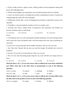 part differs from that of the other three in pronunciation in each of the following questions. Câu 9: A. attach B. stomach C. challenge D. children Câu 10: A. nag B. male C. same D. make
