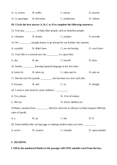 II. Circle the word that has the stress pattern differently from others. 11. A. review B. traffic C. horror D. ancient 12. A. passenger B. driverless C. production D. vehicle