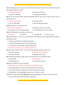 Câu 9. Văn minh Đại Việt được phát triển trong điều kiện độc lập, tự chủ của quốc gia Đại Việt, với kinh đô chủ yếu là A. Thăng Long (Hà Nội). B. Phú Xuân (Huế). C. Hoa Lư (Ninh Bình).