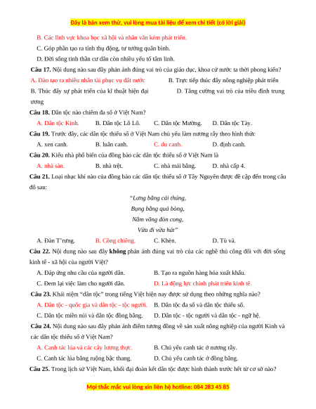 Câu 18. Dân tộc nào chiếm đa số ở Việt Nam? A. Dân tộc Kinh. B. Dân tộc Lô Lô. C. Dân tộc Mường. D. Dân tộc Tày.