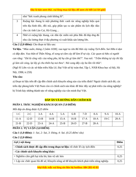 Câu 1 (1,0 điểm): Đọc đoạn tư liệu sau và thực hiện yêu cầu: