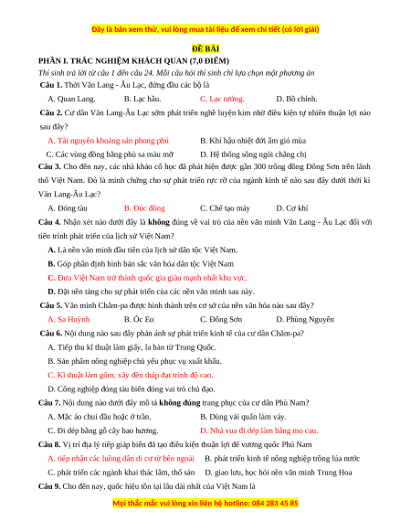 Câu 3. Cho đến nay, các nhà khảo cổ học đã phát hiện được gần 300 trống đồng Đông Sơn trên lãnh