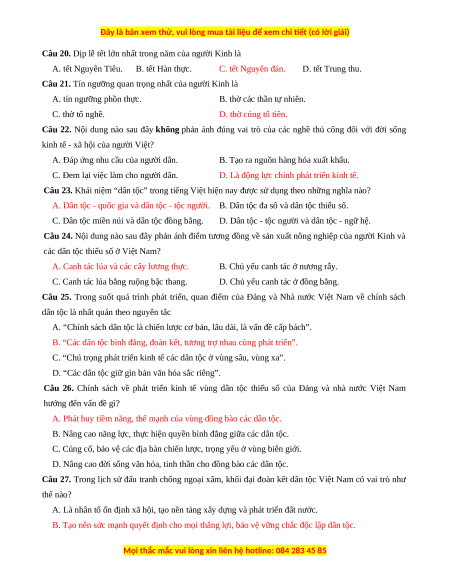 Câu 28. Nhận xét nào sau đây đúng về các chính sách dân tộc của Đảng và nhà nước Việt Nam?