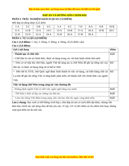 Câu 2 (2,0 điểm): Trình bày những thành tựu tiêu biểu về chữ viết của văn minh Đại Việt? Theo em,