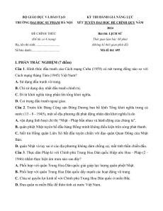 XÉT TUYỂN ĐẠI HỌC HỆ CHÍNH QUY NĂM 2024 ĐỀ CHÍNH THỨC Bài thi: LỊCH SỬ (Đề thi có 4 trang)