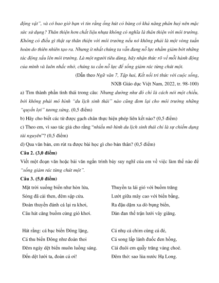 “sống giảm rác từng chút một”. Câu 3. (5,0 điểm)