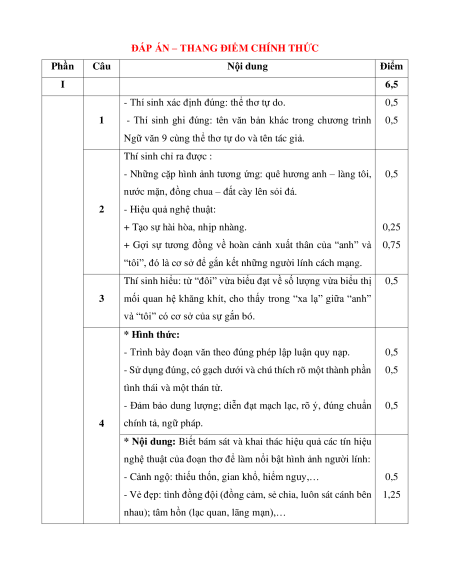 - Thí sinh xác định đúng: thể thơ tự do. 0,5 1