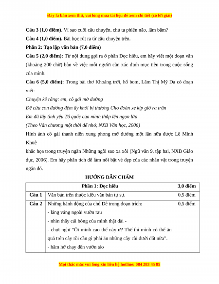 dục, 2006). Em hãy phân tích để làm nổi bật vẻ đẹp của các nhân vật trong truyện ngắn đó. HƯỚNG DẪN CHẤM Phần 1: Đọc hiểu 3,0 điểm Câu 1
