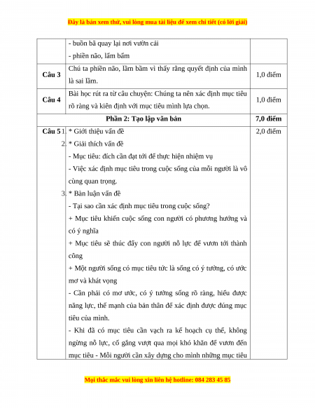 Phần 2: Tạo lập văn bản 7,0 điểm