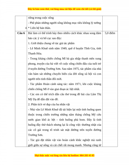 Câu 6 (5,0 điểm): Trong bài thơ Khoảng trời, hố bom, Lâm Thị Mỹ Dạ có đoạn viết: