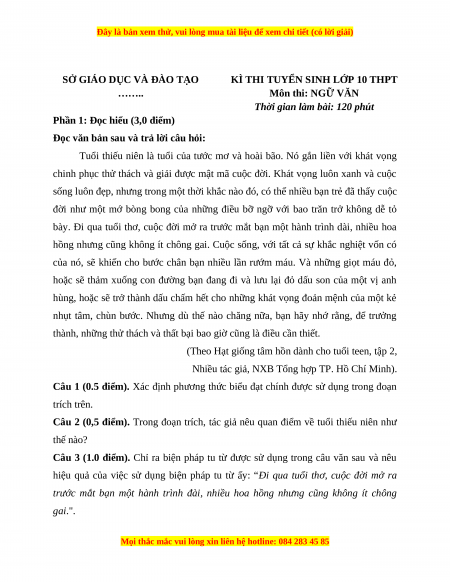 Phần 1: Đọc hiểu (3,0 điểm)
