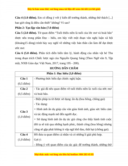 Câu 4 (1.0 điểm). Em có đồng ý với ý kiến để trưởng thành, những thử thách [...]