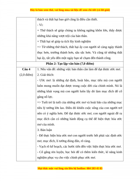 Câu 5 (2.0 điểm). Từ quan điểm “Tuổi thiếu niên là tuổi của lớc mơ và hoài bão"