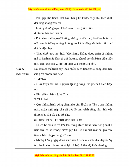 Câu 6 (5.0 điểm). Phân tích diễn biến tâm lý, hành động của nhân vật bé Thu