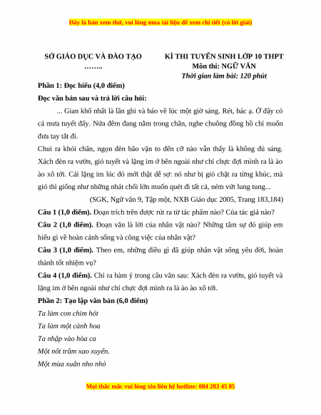 Câu 4 (1,0 điểm). Chỉ ra hàm ý trong câu văn sau: Xách đèn ra vườn, gió tuyết và