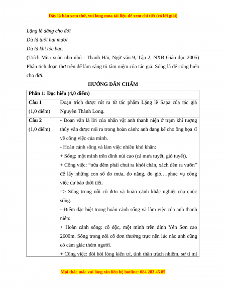 Phân tích đoạn thơ trên để làm sáng tỏ tâm niệm của tác giả: Sống là để cống hiến cho đời. HƯỚNG DẪN CHẤM