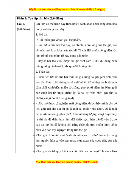 Phần 2: Tạo lập văn bản (6,0 điểm) Ta làm con chim hót