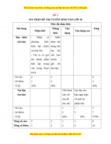 MA TRẬN ĐỀ THI TUYỂN SINH VÀO LỚP 10