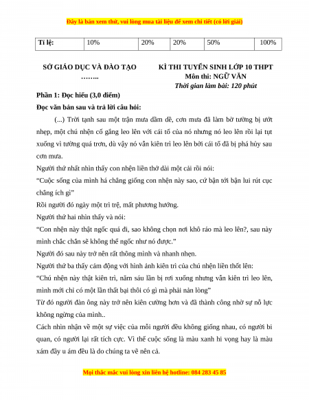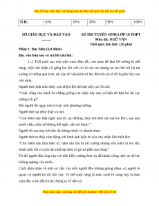 KÌ THI TUYỂN SINH LỚP 10 THPT …….. Môn thi: NGỮ VĂN