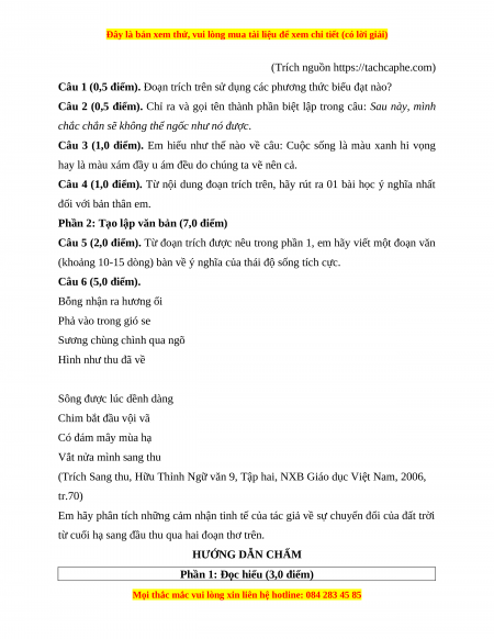 (Trích Sang thu, Hữu Thỉnh Ngữ văn 9, Tập hai, NXB Giáo dục Việt Nam, 2006, tr.70)