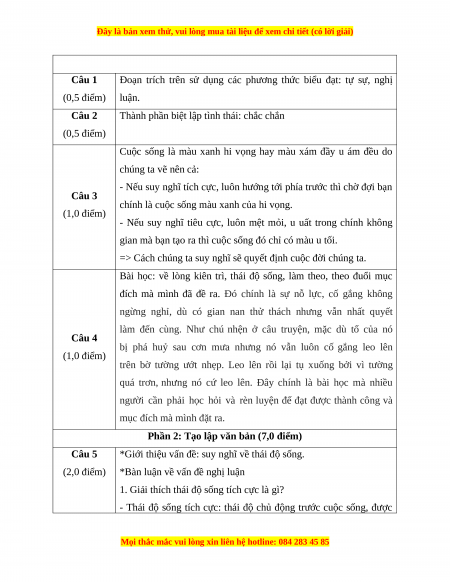 (khoảng 10-15 dòng) bàn về ý nghĩa của thái độ sống tích cực. Câu 6 (5,0 điểm). Bỗng nhận ra hương ổi Phả vào trong gió se
