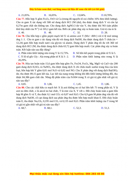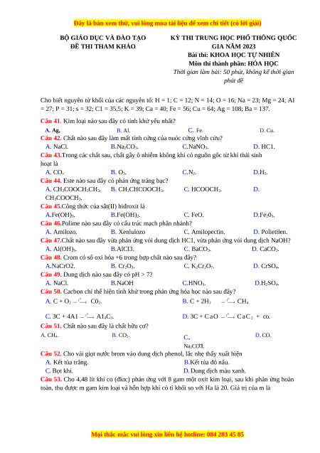 Bài thi: KHOA HỌC TỰ NHIÊN