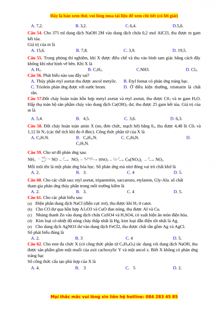 Câu 62. Cho este đa chức X (có công thức phân tử C6H10O4) tác dụng vói dung dịch NaOH, thu