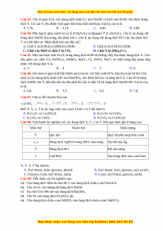 Câu 68. Tiến hành thí nghiệm vói các dung dịch X, Y, z và T. Kết quả được ghi ở bảng sau: Mẩu thử Thuốc thử Hiện tượng Y Quỳ tím Quỳ chuyển sang màu xanh x , z