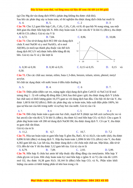 Câu 71: Cho từ từ dung dịch HCl IM vào dung dịch