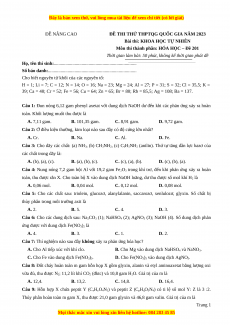 Môn thi thành phần: HÓA HỌC – Đề 201