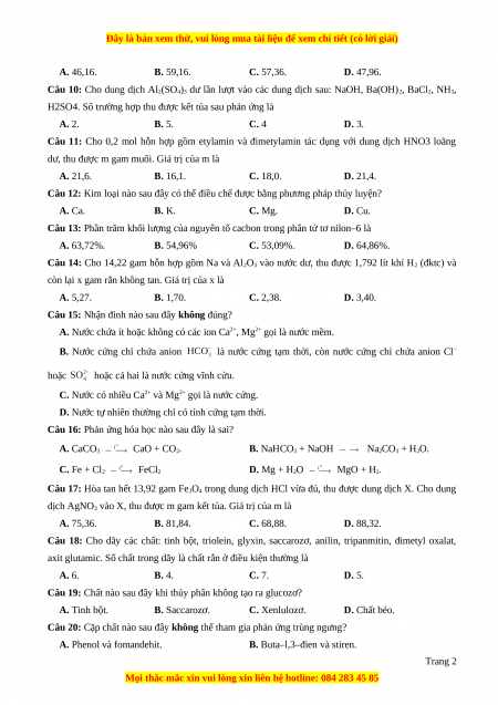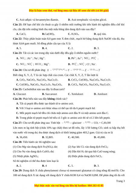 100 ml dung dịch X tác dụng với dung dịch Y chứa KOH 0,4 và NaOH 0,8M. Để phản ứng tối đa với Trang 3