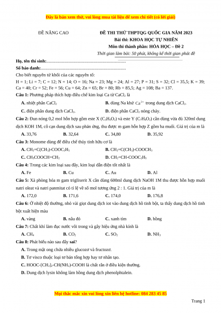 Bài thi: KHOA HỌC TỰ NHIÊN