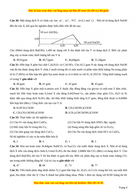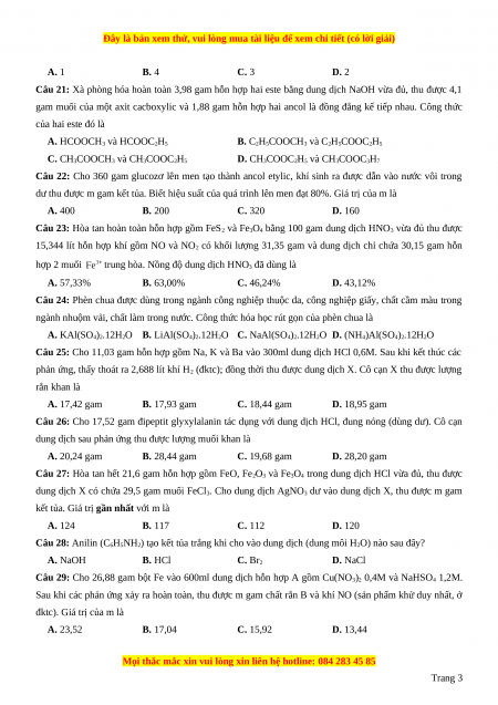 Câu 26: Cho 17,52 gam đipeptit glyxylalanin tác dụng với dung dịch HCl, đung nóng (dùng dư). Cô cạn