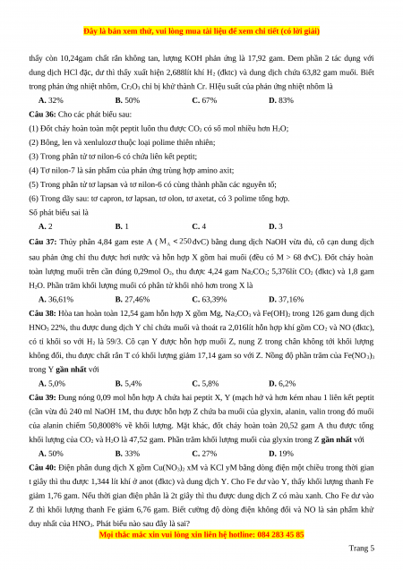 Câu 36: Cho các phát biểu sau: