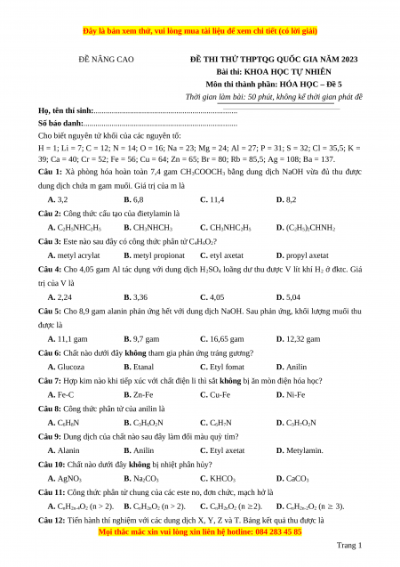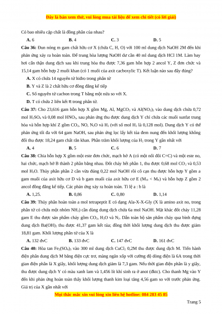 Môn thi thành phần: HÓA HỌC – Đề 5