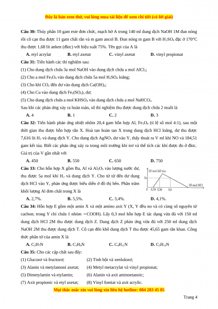 Câu 26: Cho dãy các chất: triolein, metyl acrylat, xenlulozơ, protein, metylamin. Số chất bị thủy