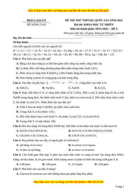 Bài thi: KHOA HỌC TỰ NHIÊN