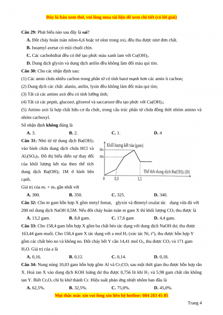 Câu 31: Nhỏ từ từ dung dịch Ba(OH)